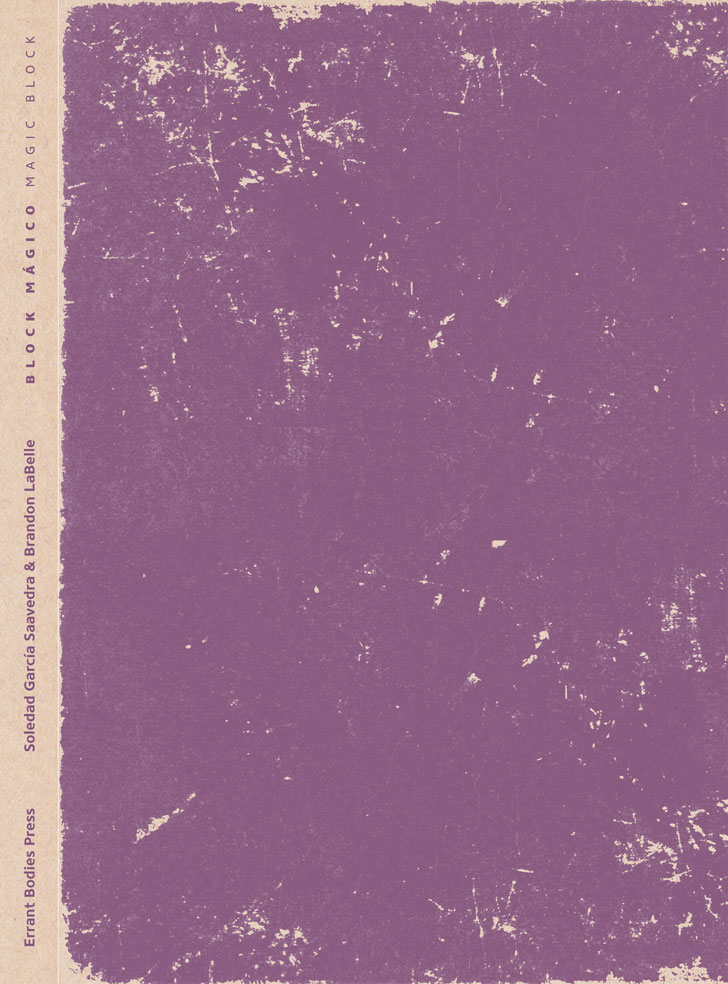BLOCK MÁGICO publicación de editorial errant bodies (Berlín), corresponde a un libro curatorial de un proyecto de Soledad García y Brandon LaBelle.